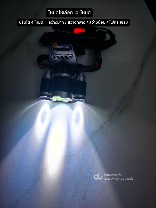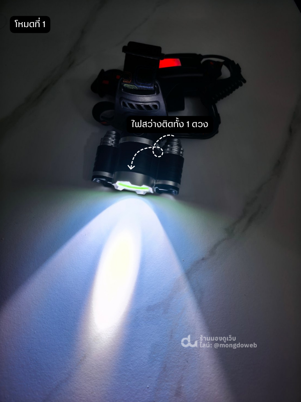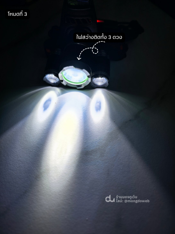 โหมดการทำงาน : 3 โหมด สามารถปรับได้ 3 โหมดเพื่อการใช้งาน (สว่างมาก / สว่างน้อย / ไฟกระพริบ )
